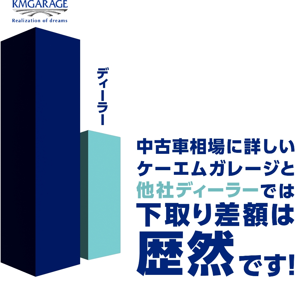 「車を買い換えたいな」と思っているあなた。 「ディーラーの下取り価格がイマイチだな」と思っているあなた。 「大事に乗ってきたから高く売りたいな」と思っているあなた。 あなた方のその想い、ケーエムガレージが受けとめます。 ケーエムガレージでは豊富でタイムリーな情報をもとに査定をしているため、買取には自信があります。 小平にお住まいの方はもちろん、西東京、清瀬、国分寺、小金井近辺にお住まいの方にもお勧めです。 お電話またはお問い合わせフォームでご予約いただき、車検証をお持ちの上、お車で店舗へご来店ください。 その場で査定いたします。